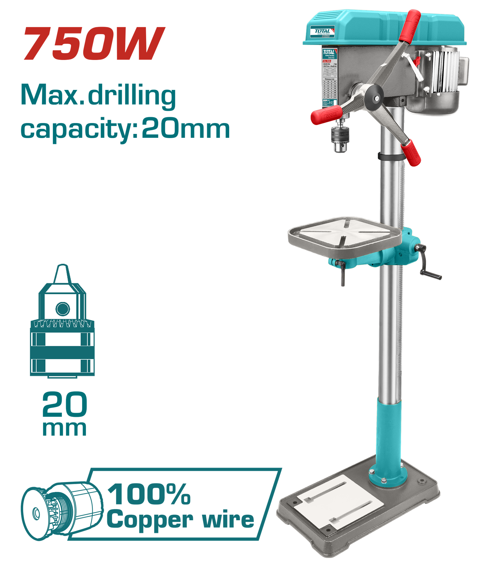 TALADRO DE BANCO 50/64" 750W INDUSTRIAL 16 VELOCIDADES TOTAL (UTDP207505)