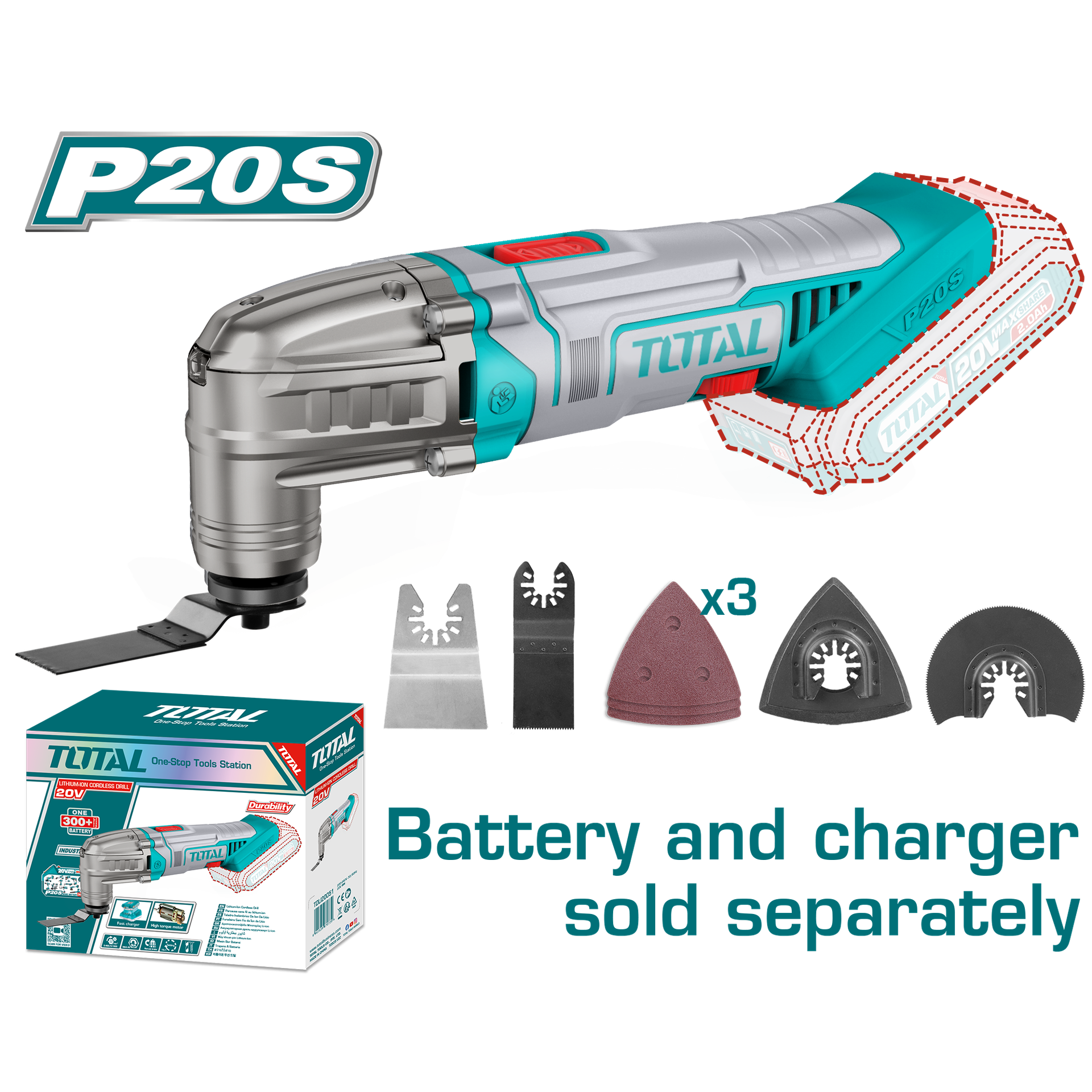 MULTIHERRAMIENTA INALAMBRICA OSCILANTE 20V + ACCESORIOS BATERIA Y CARGADOR NO INCLUIDO TOTAL (TMLI2022)