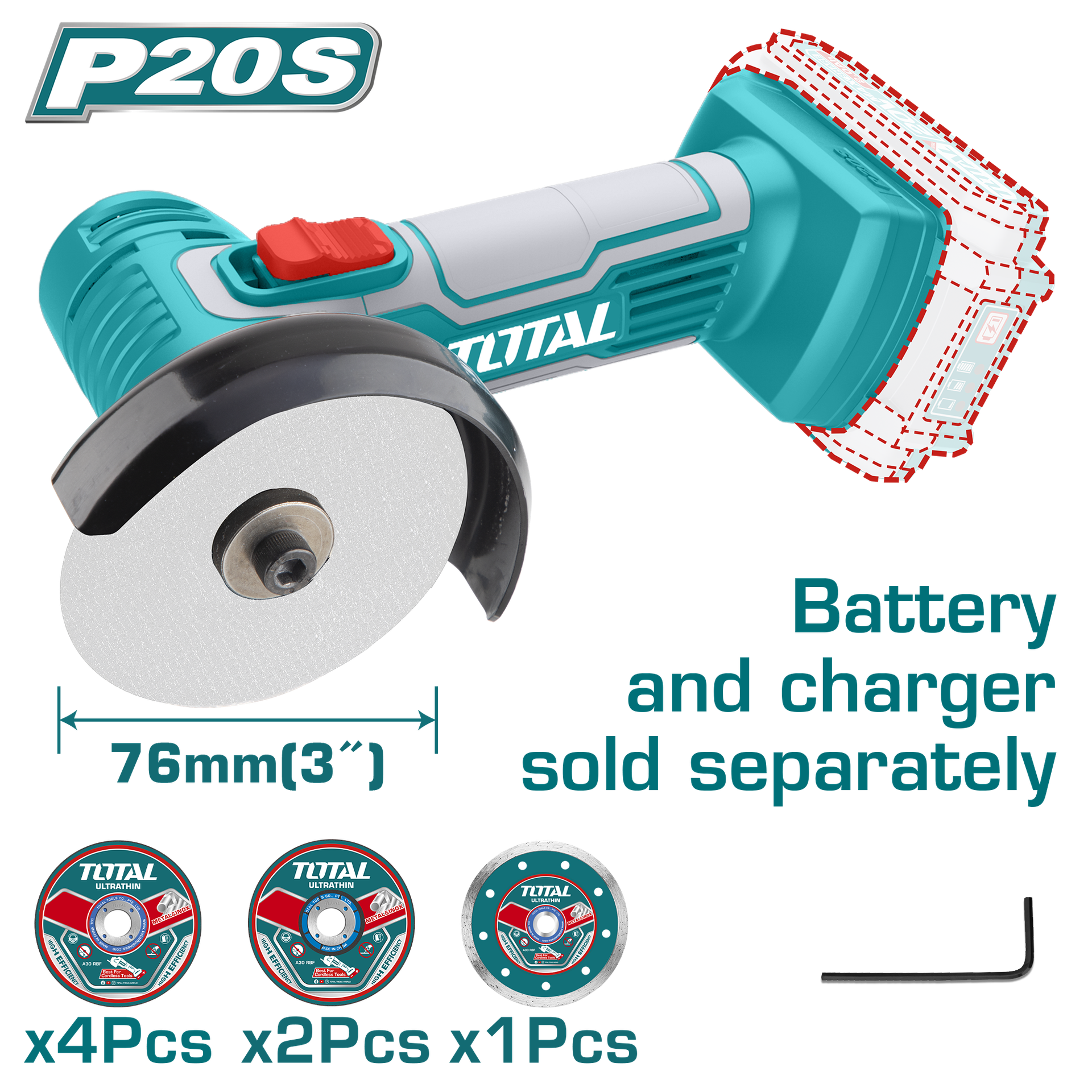 PULIDORA INALAMBRICA 4 1/2 SUPER SELECT 20V BATERIA Y CARGADOR NO INCLUIDO TOTAL (UTAGLI211156)