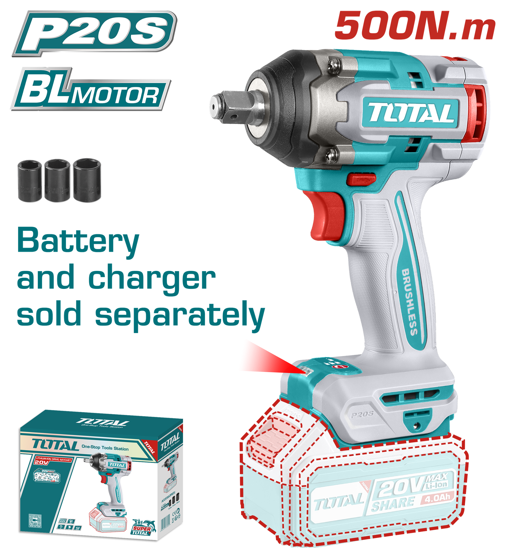 PISTOLA IMPACTO INALAMBRICO 1/2 20V 500 N.M BATERIA Y CARGADOR SE VENDEN POR SEPARADO SUPER TOTAL (TIWLI20501)