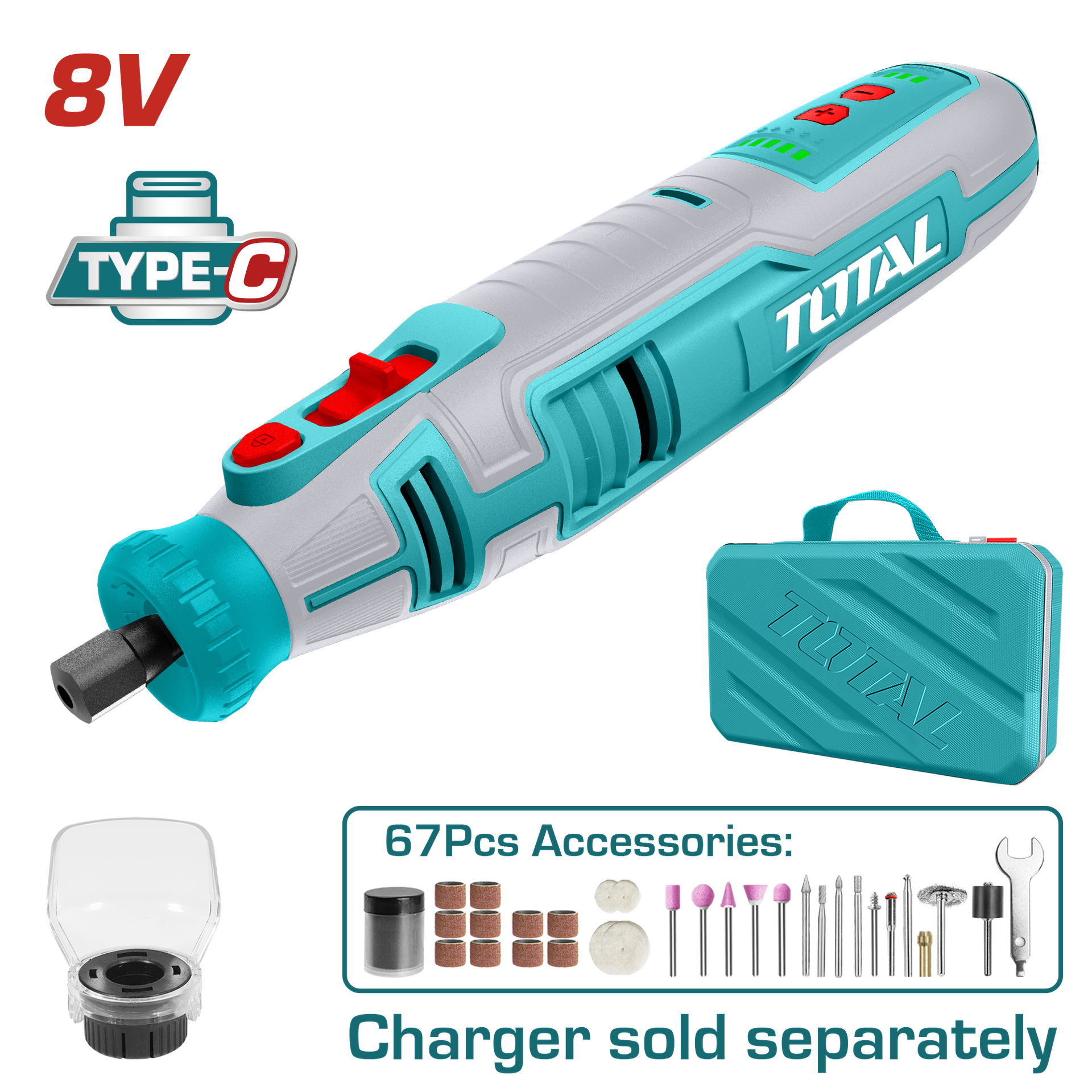 MOTO TOOL INALAMBRICO 8V INCLUYE 67 ACCESORIOS TOTAL (TMGLI0801)