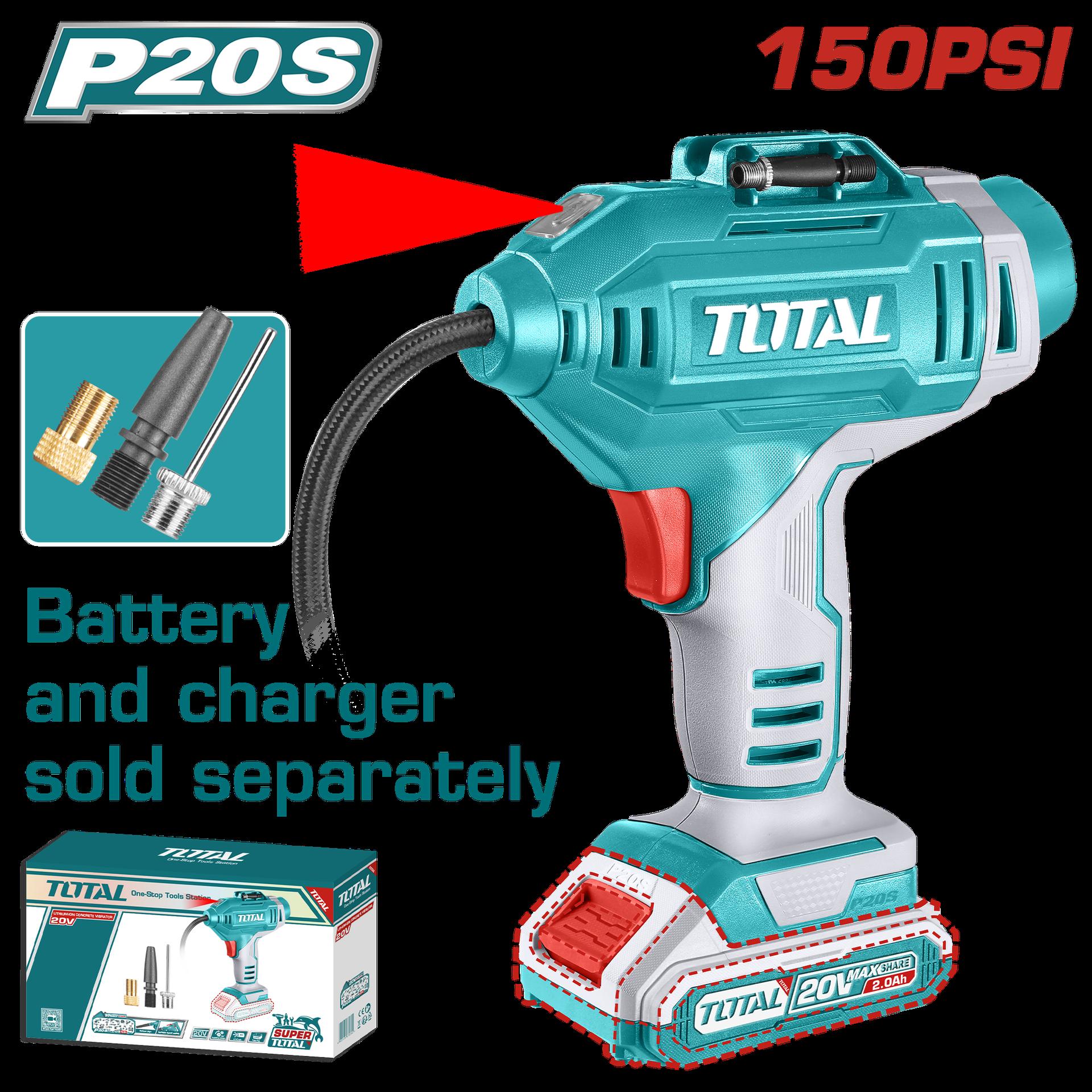 COMPRESOR MINI INALAMBRICO 20V 150PSI PARA CARRO BATERIA Y CARGADOR NO INCLUIDO SUPER TOTAL (TACLI2018)