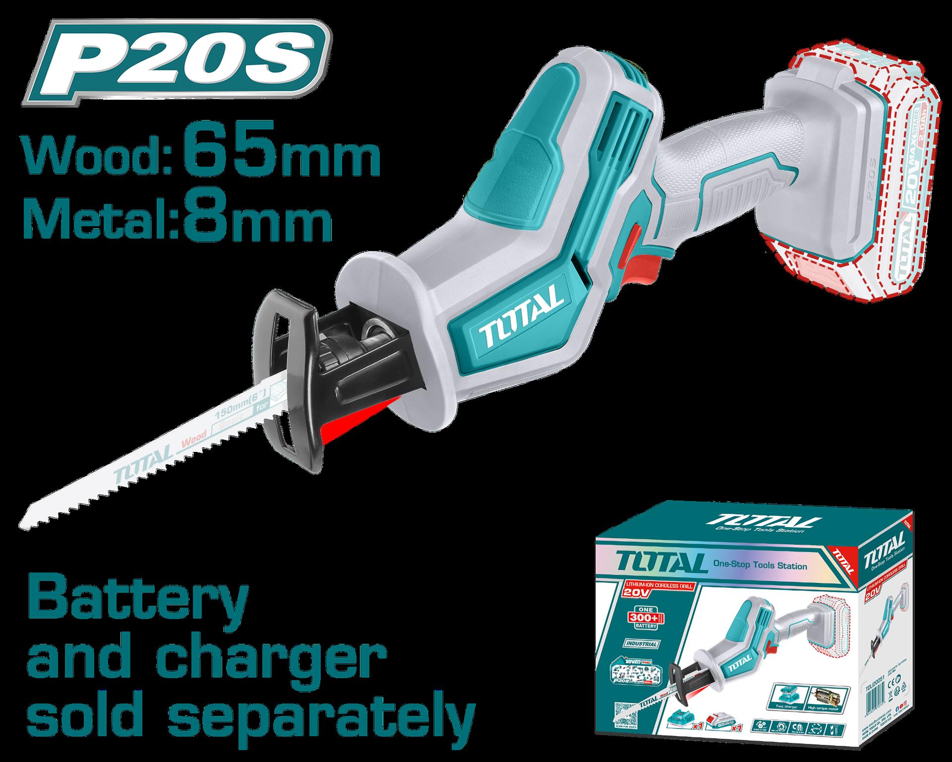 SIERRA SABLE INALAMBRICA 20V (CAPACIDAD DE CORTE METAL:8MM-MADERA 65MM) BATERIA Y CARGADOR NO INCLUIDO TOTAL (TRSLI6506)
