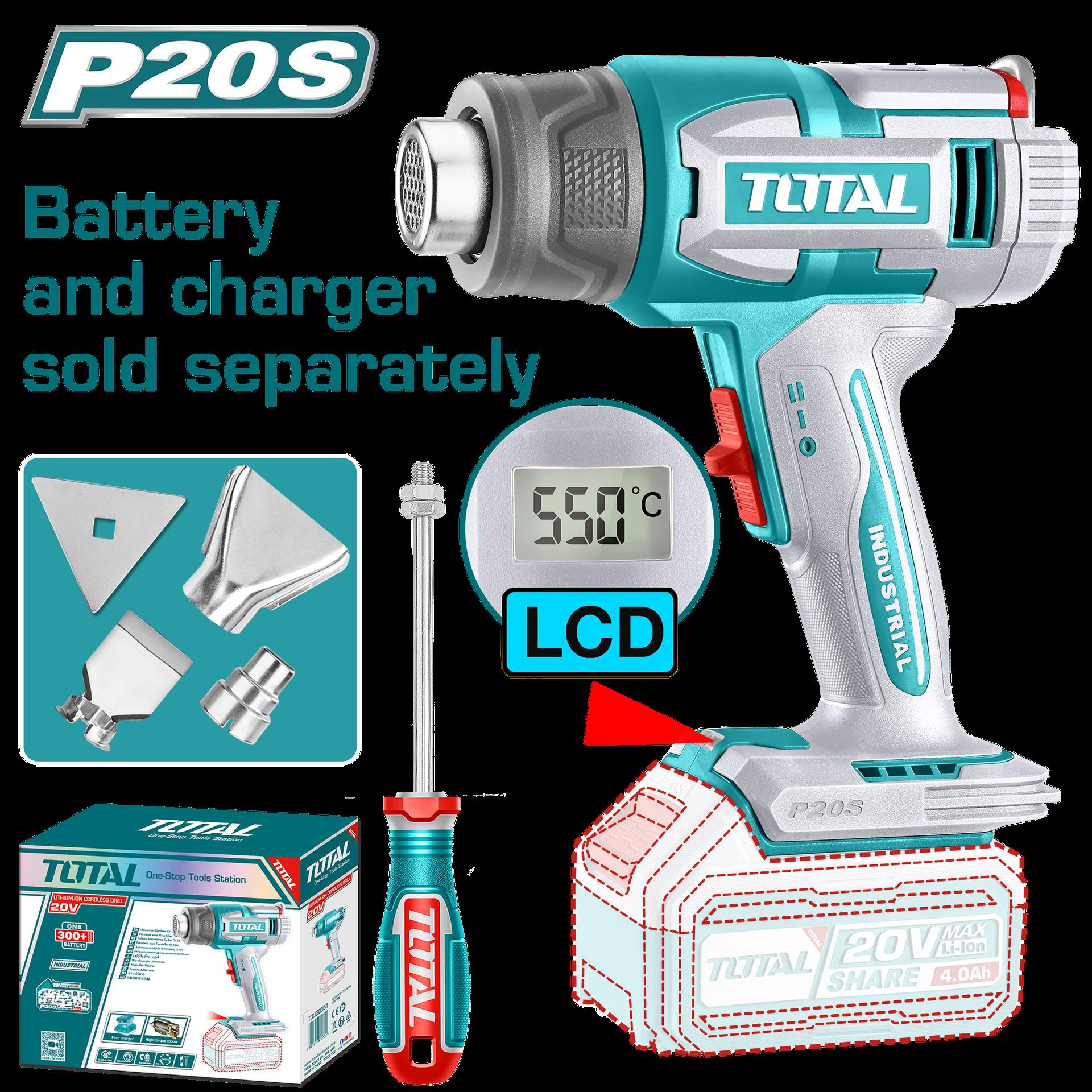 COMBO X 2 PISTOLA DE CALOR INCLUYE 4 ACEESORIOS, 1 BATERIA Y CARGADOR TOTAL (UTOSLI240201)COMBO X 2 PISTOLA DE CALOR INCLUYE 4 ACEESORIOS, 1 BATERIA Y CARGADOR TOTAL (UTOSLI240201)