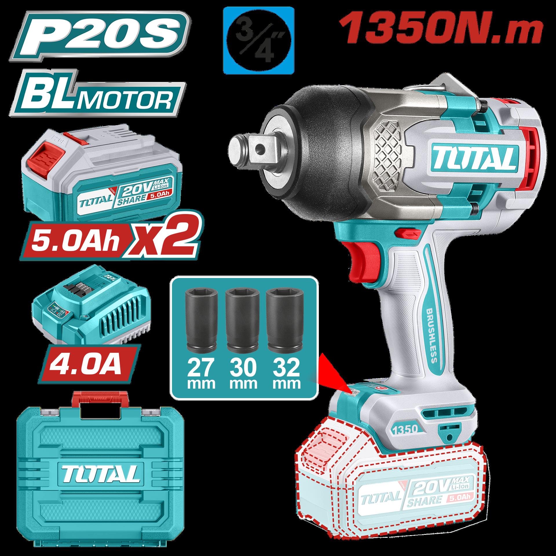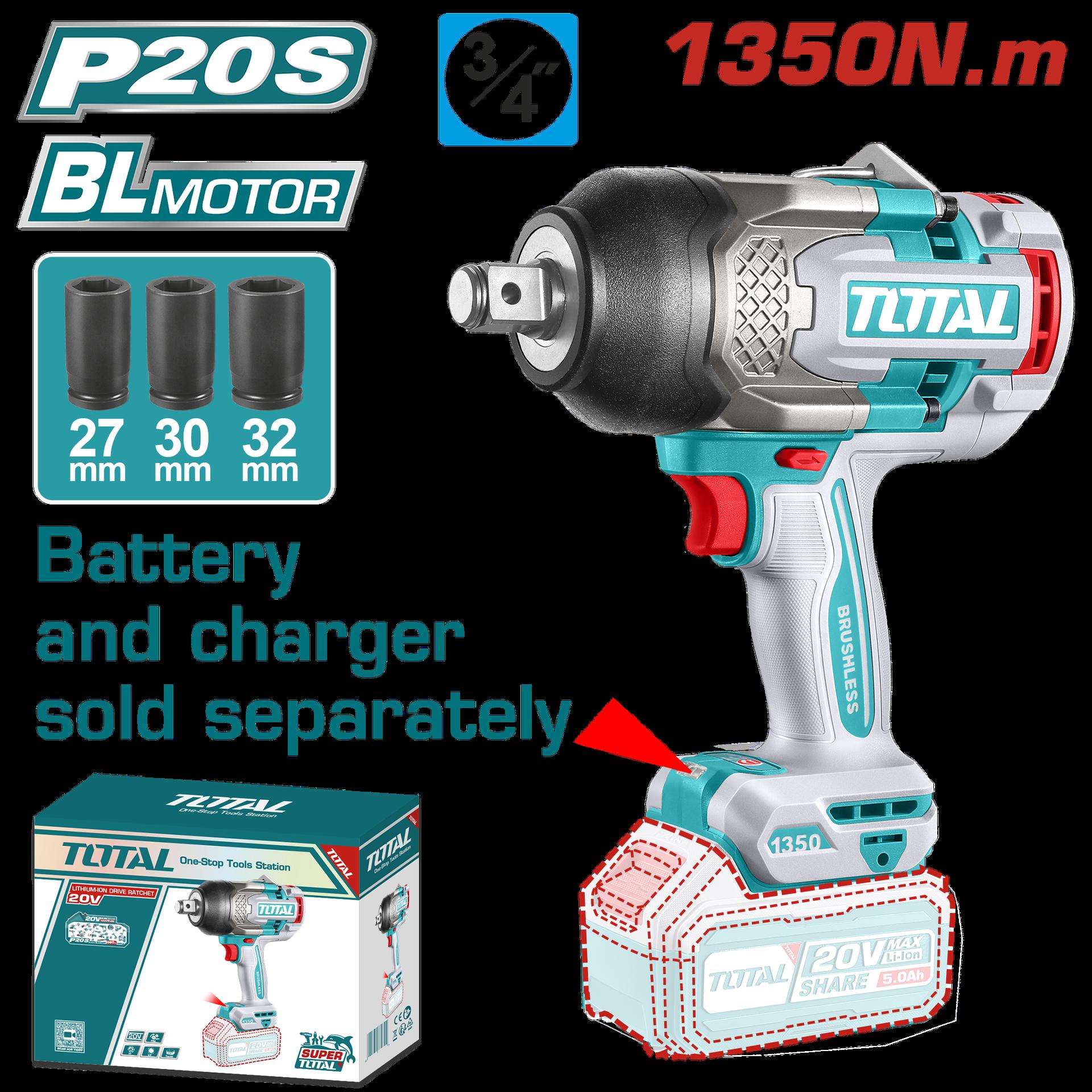 PISTOLA IMPACTO INALAMBRICO 1/2 20V 850 N.M BATERIA Y CARGADOR SE VENDEN POR SEPARADO SUPER TOTAL (TIWLI20851)