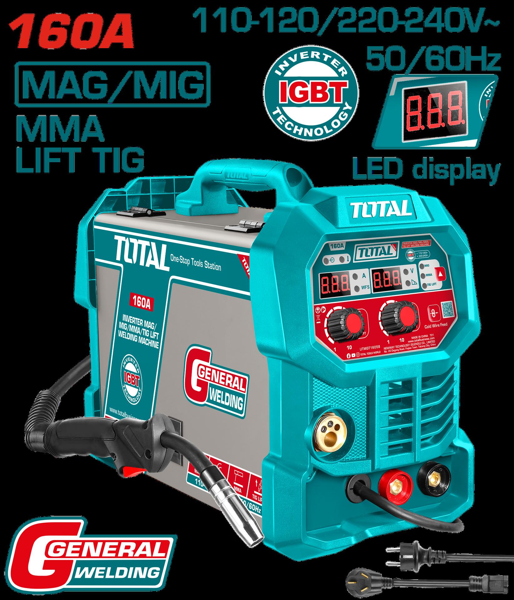 SOLDADOR INVERSOR DIGITAL 160A (HF-TIG-MMA) 110-220V TOTAL (UTIG16058)