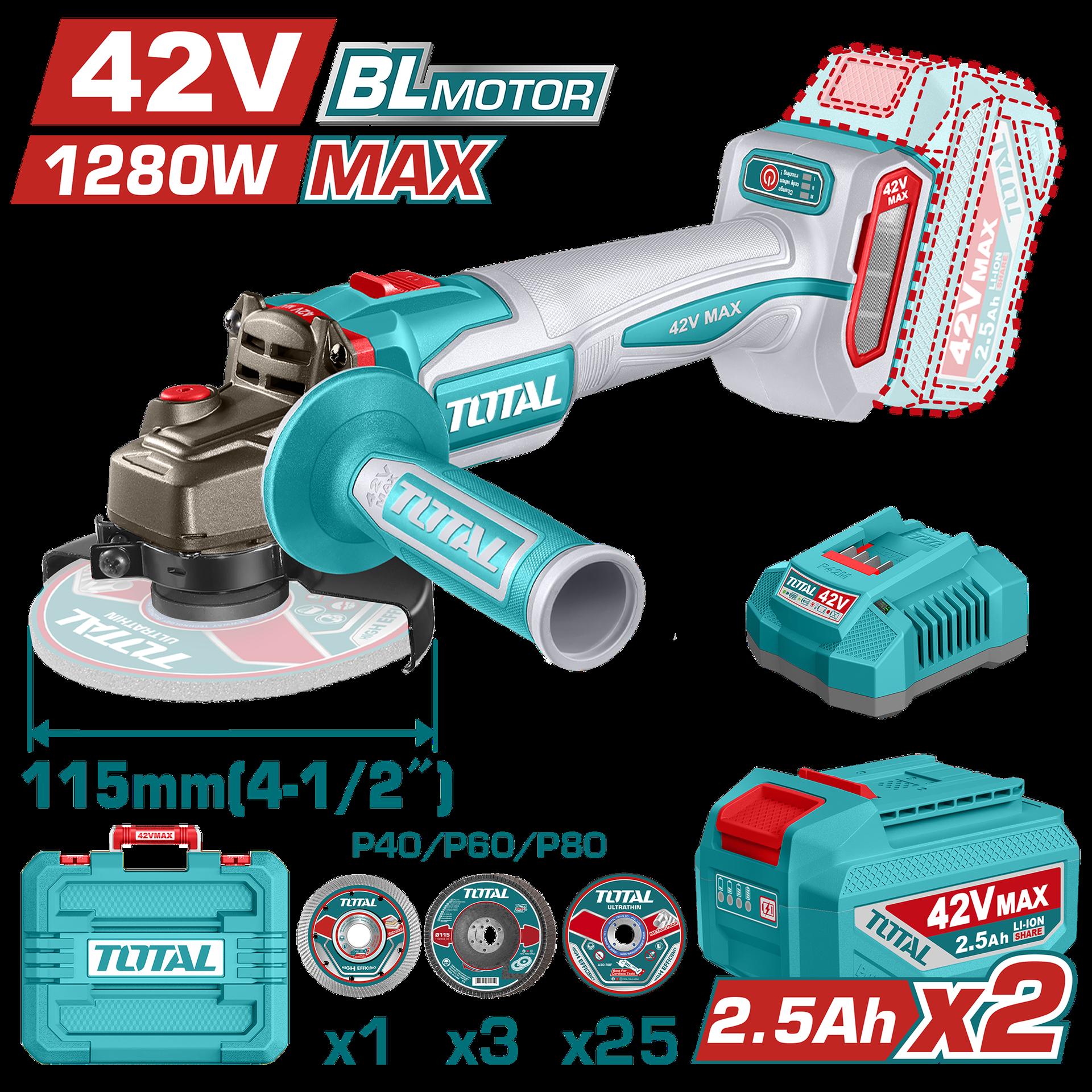 PULIDORA INALAMBRICA 4 1/2 INDUSTRIAL 20V 1000W INCLUYE 10 DISCOS PARA CORTE DE METAL 2 BATERIAS 4.0 AH Y CARGADOR , MOTOR SIN ESCOBILLAS INDUSTRIAL SUPER TOTAL (UTAGLI271532)