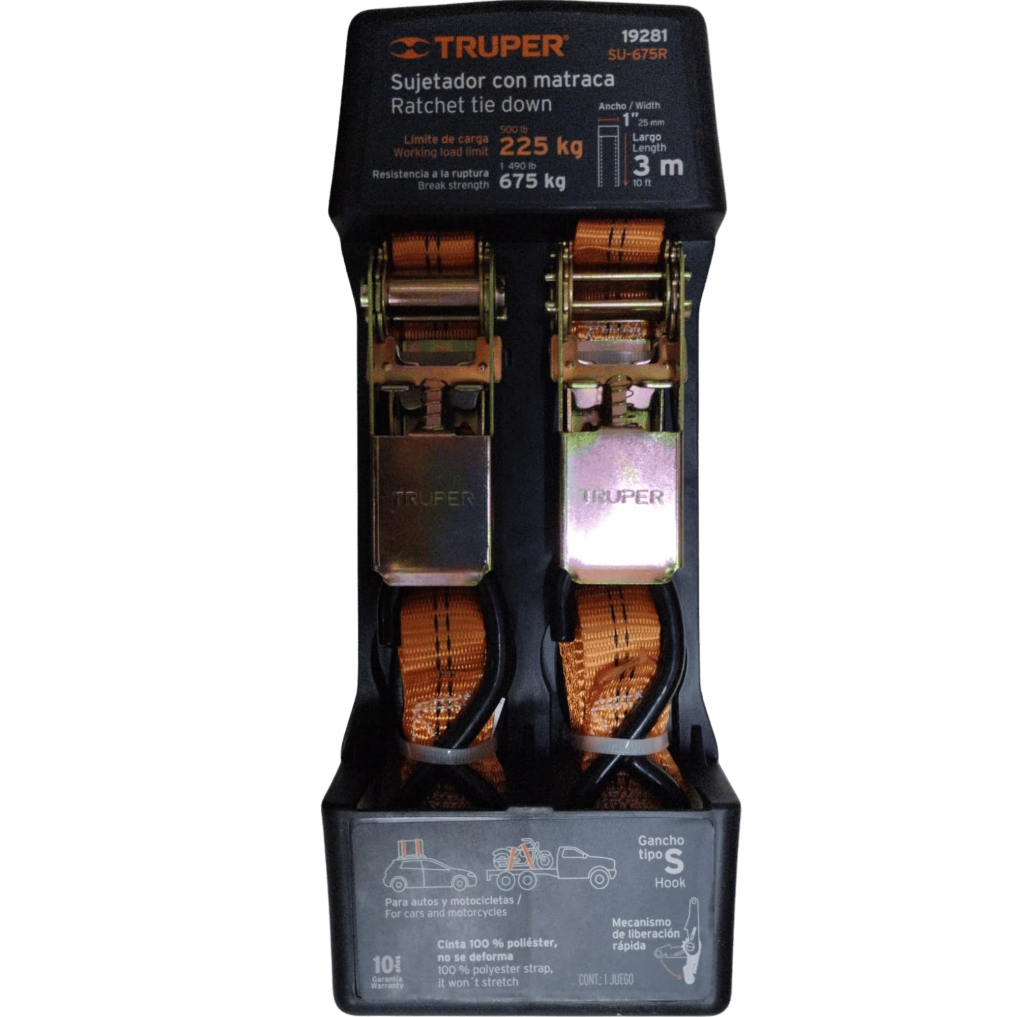 JUEGO DE 2 SUJETADORES CON MATRACA CARGA MAXIMA 675KG SU-6755R