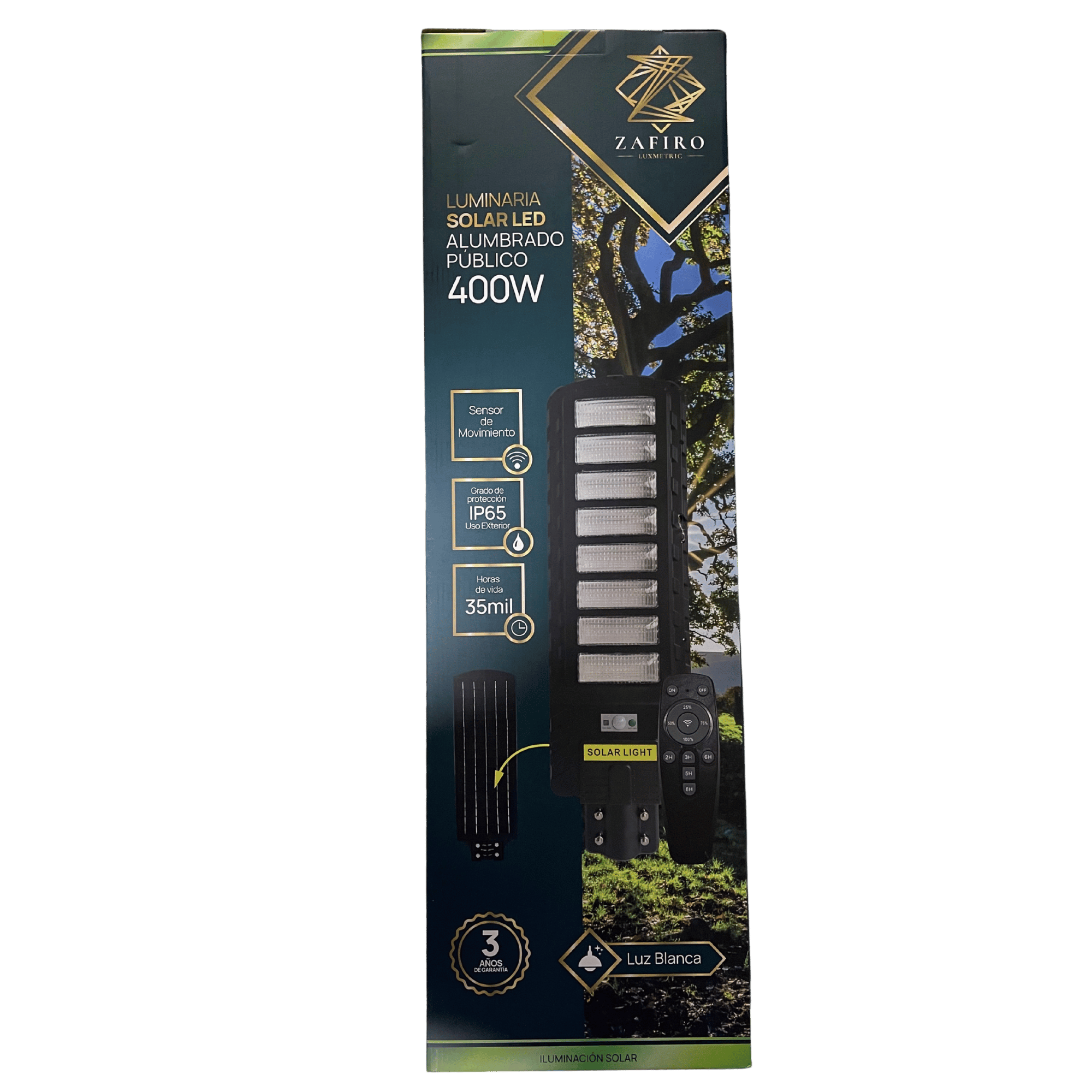 LUMINARIA SOLAR LED EXTERIOR ZAFIRO 400W 6500K C/SENSOR