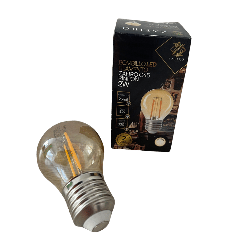 BOMBILLO LED FILAMENTO ZAFIRO G45PINPON 2W 2700K E27