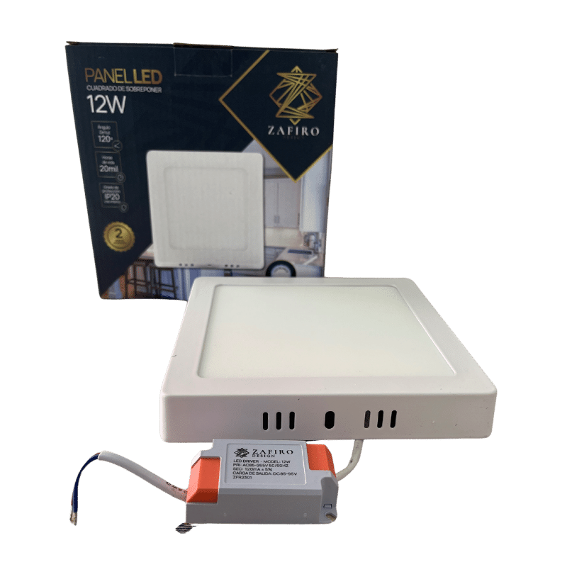 PANEL LED ZAIFRO CUADRADO 12W 6" SOBREPONER LUZ BLANCA