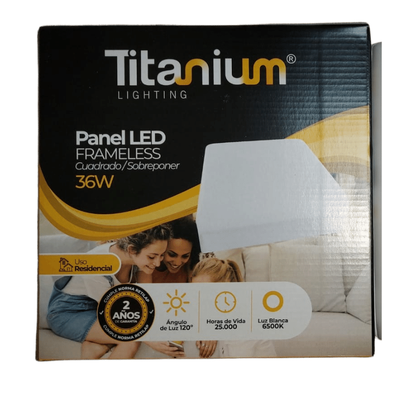 PANEL LED FRAMELESS TITANIUM 36W BLANCO CUADRADO 6500K SOBREPONER