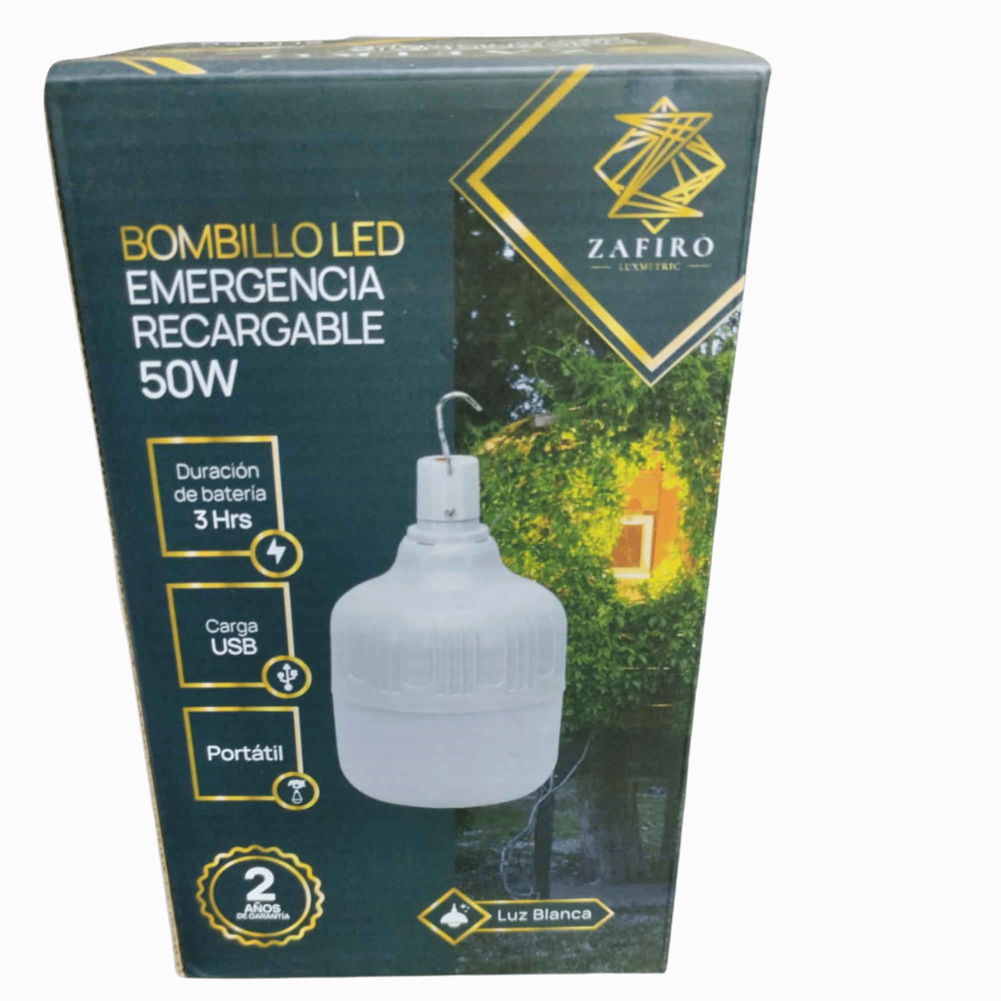 BOMBILLO DE EMERGENCIA ZAFIRO RECARGABLE USB 50W 6500K CON GANCHO