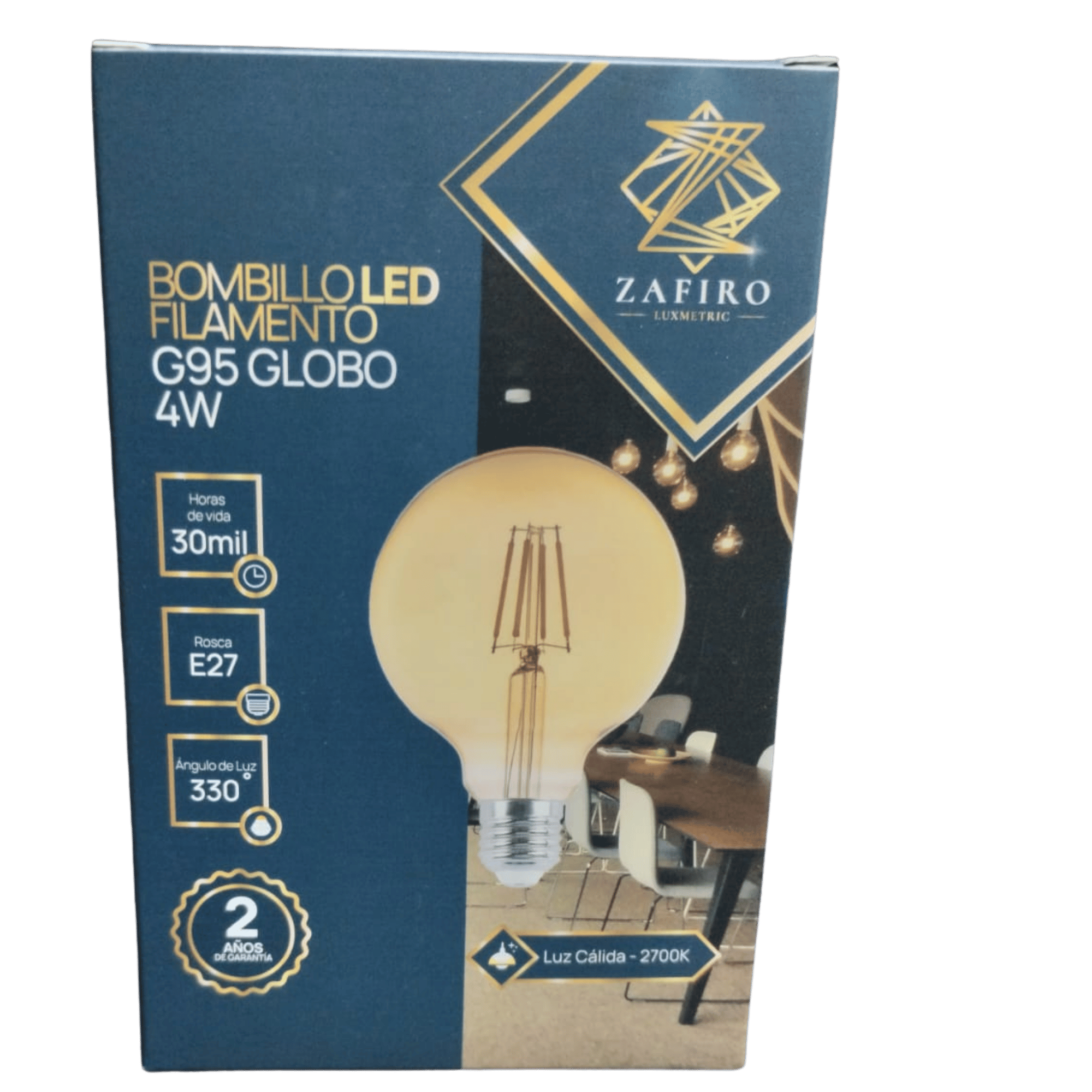 BOMBILLO LED FILAMENTO ZAFIRO G95 GLOBO 4W 2700K E27