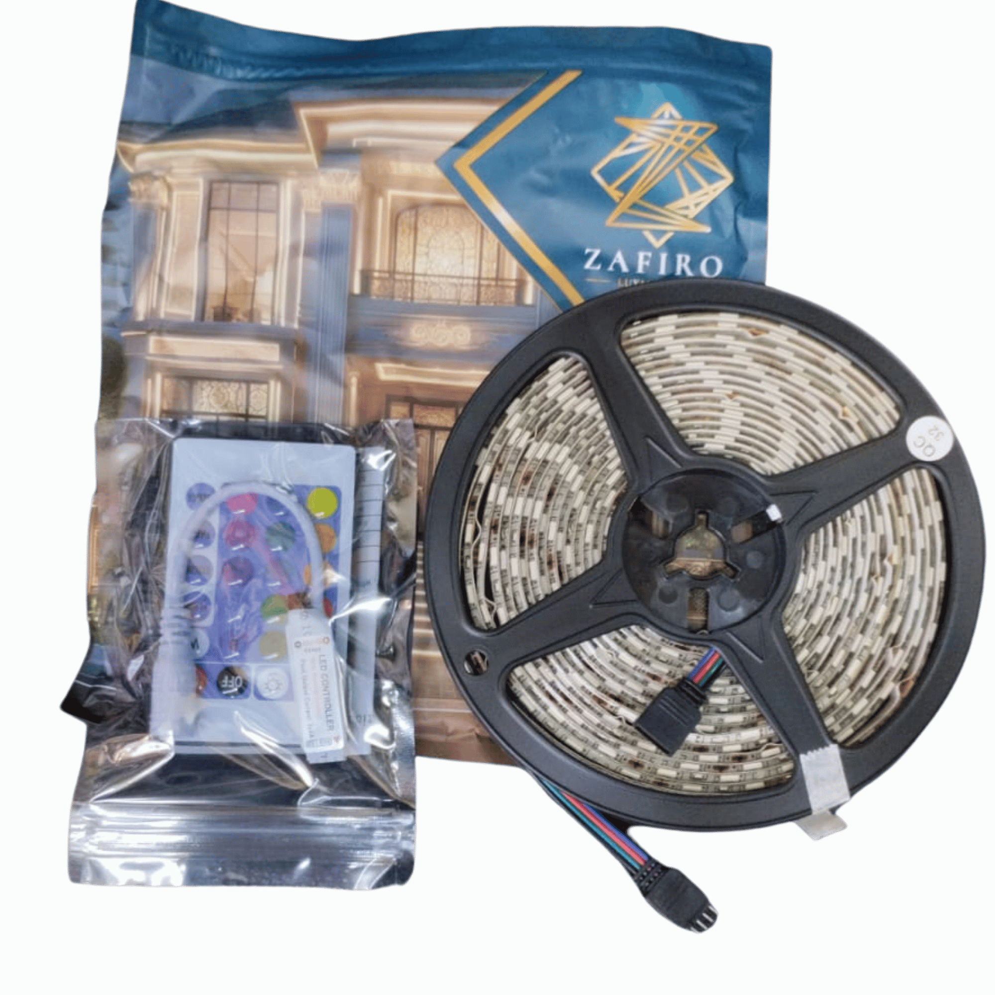 CINTA LED 12V ZAFIRO IPL65 LUZ RGB ROLLO X5M INCLUYE KIT CONTROLADOR +CONTROL