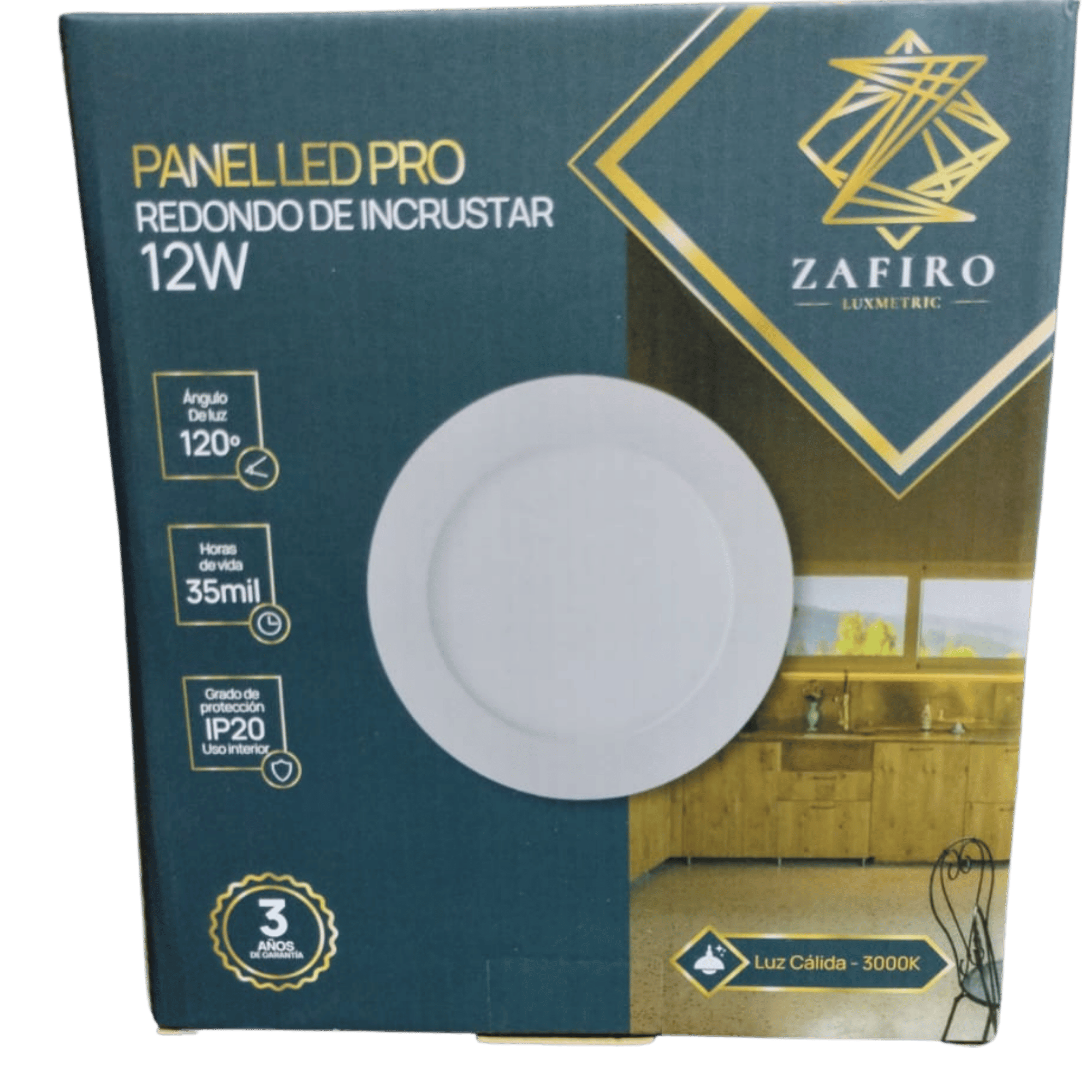 PANEL LED ZAFIRO REDONDO 12W 6" INCRUSTAR LUZ CALIDA