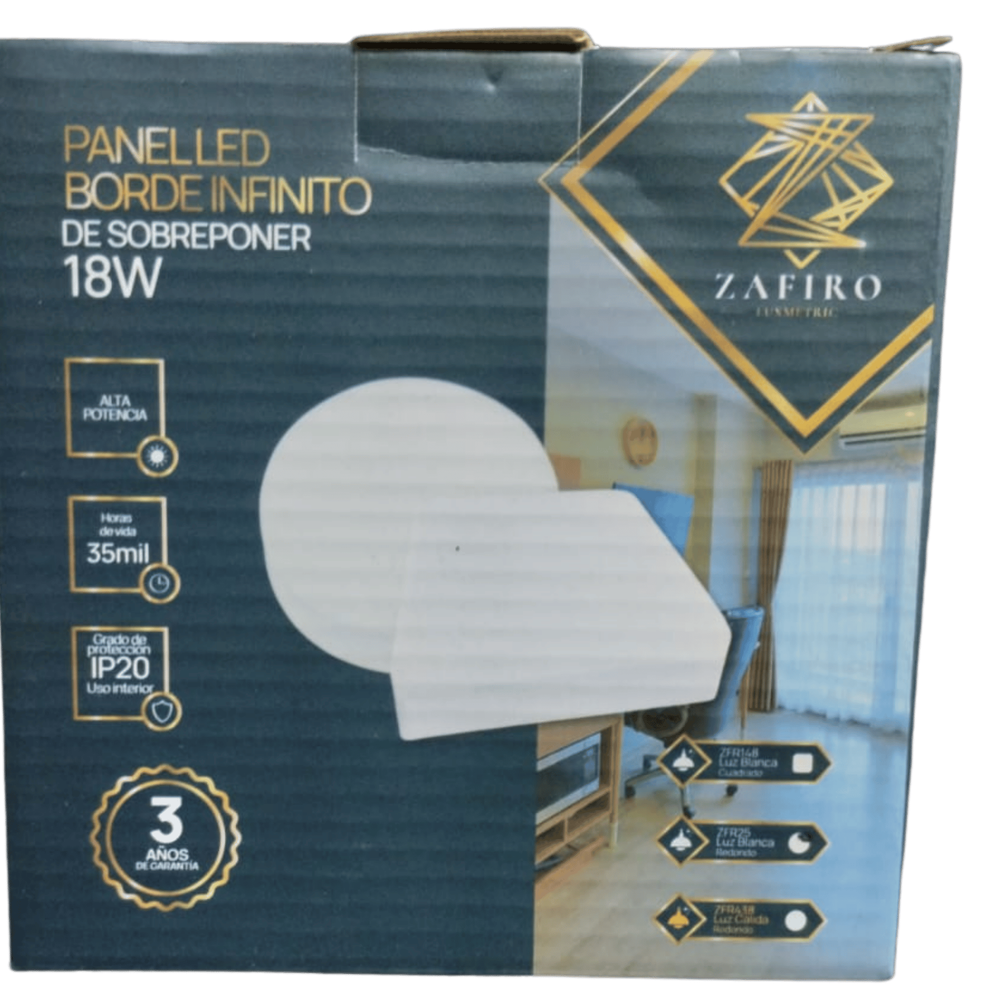 PANEL LED BORDE INFINITO ZAFIRO REDONDO 36W SOBREPONER LUZ BLANCA