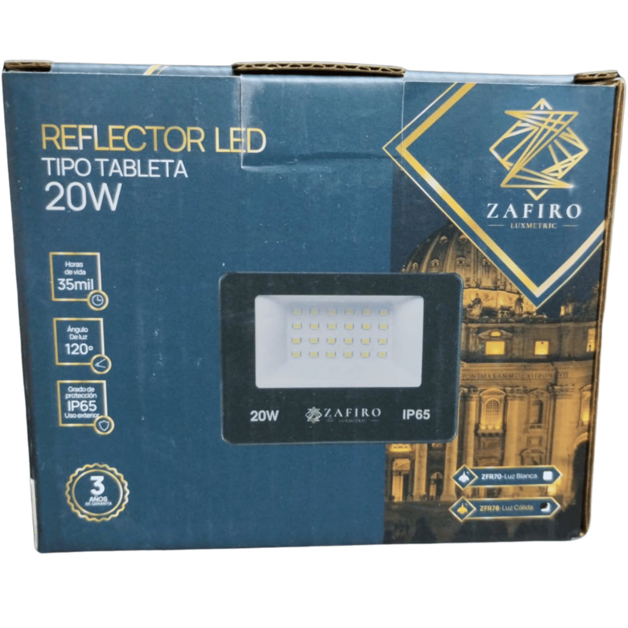 REFLECTOR LED TIPO TABLETA 20W ZAFIRO LUZ CALIDA