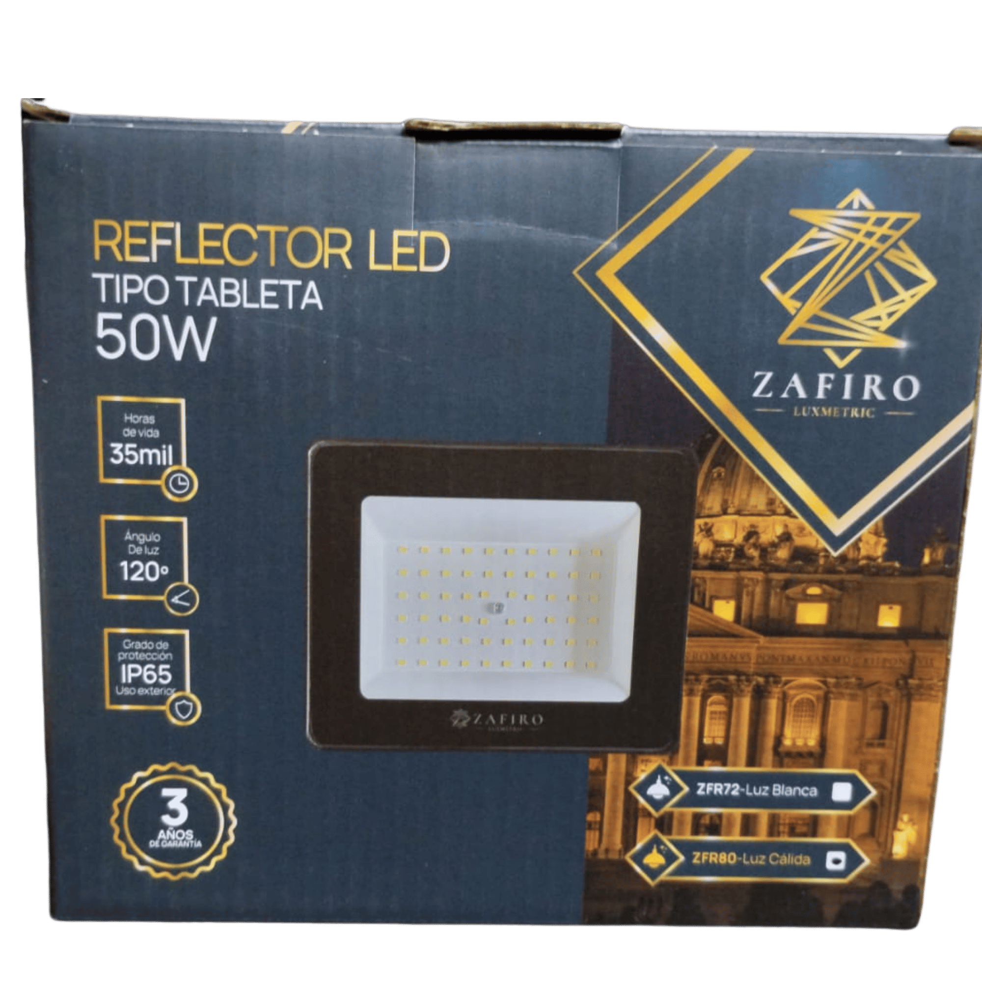 REFLECTOR LED TIPO TABLETA 50W ZAFIRO LUZ CALIDA