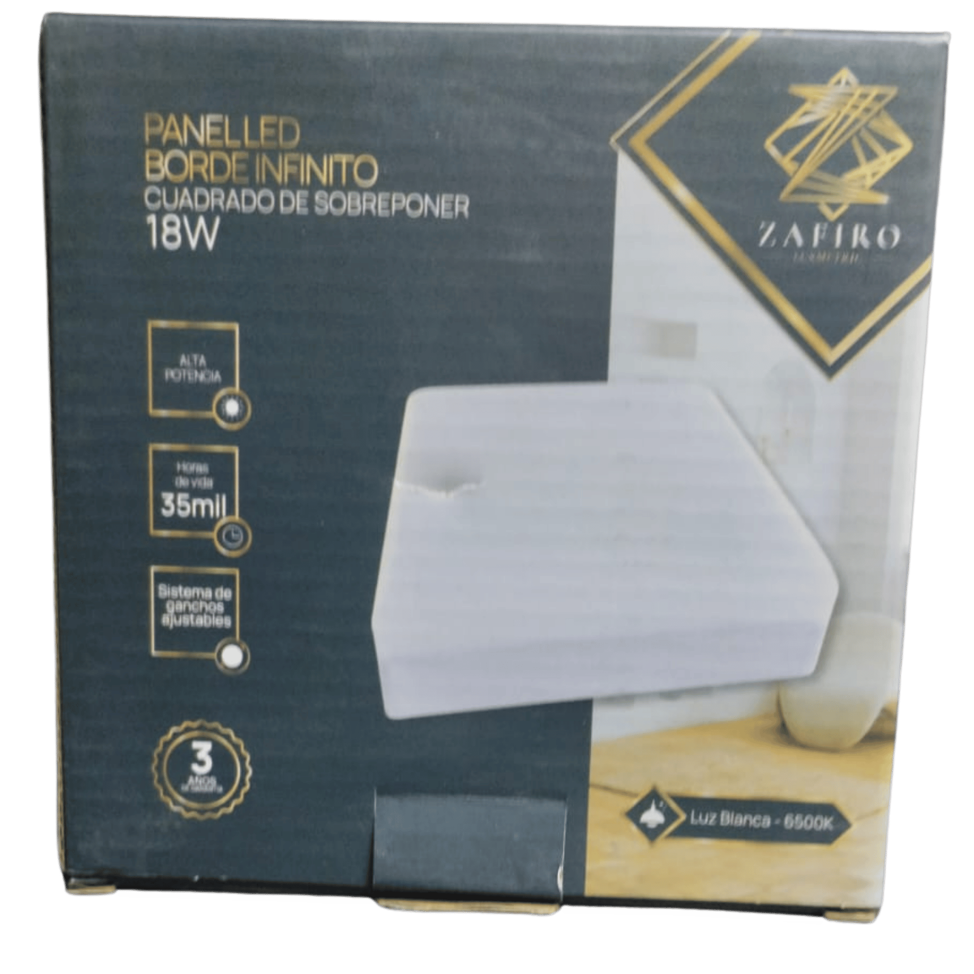 PANEL LED ZAFIRO BORDE INFINITO CUADRADO 18W SOBREPONER 6500K
