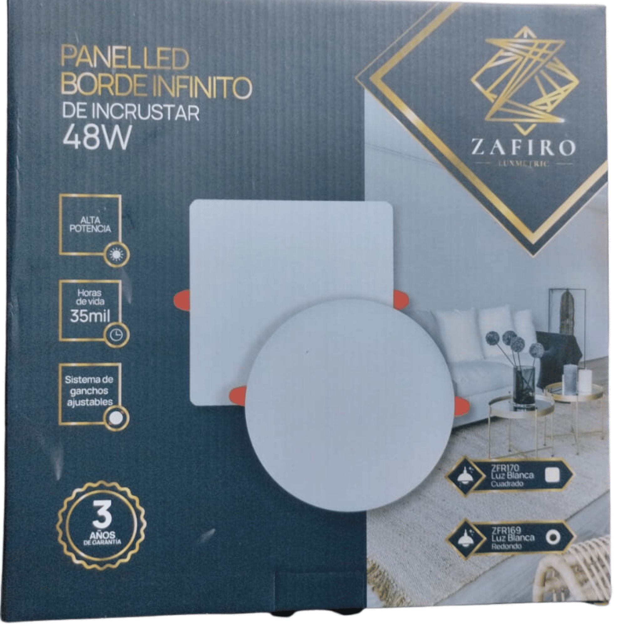 PANEL LED BORDE INFINITO ZAFIRO REDONDO 48W SOBREPONER LUZ BLANCA